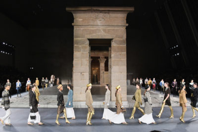 Chanel ha presentato al Metropolitan Museum of Art di New York – detto anche Met – la sua annuale Métiers d’art, una collezione itinerante dedicata ai laboratori artigianali che fanno parte di Paraffection: è l’azienda sussidiaria che Chanel aprì nel 1997 per promuovere il raffinato lavoro degli artigiani francesi con cui collabora. Le modelle hanno sfilato nel Tempio di Dendur, costruito nell’Antico Egitto attorno al 15 a.C. ed esposto al Met dal 1978, coerentemente con la convinzione del direttore creativo Karl Lagerfeld che «niente è più moderno dell’antico».