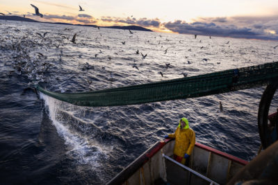 Il fotografo Jeff Mitchell ha scattato per l’agenzia Getty Images una serie di foto ai pescatori della Radiant Star, un peschereccio scozzese che opera al largo delle Isole Shetland nel Mare del Nord. Oltre che per gli aspetti affascinanti e avventurosi del lavoro dei pescatori tra onde e gabbiani, le foto sono interessanti perché raccontano un pezzo delle faticose trattative sull’uscita del Regno Unito dall’Unione Europea. L’industria britannica della pesca, relativamente piccola, è diventati infatti un simbolo dei sostenitori di Brexit e di chi voleva che il Regno Unito riottenesse maggiori autonomie, anche se ora gli scenari possibili non sembrano più così promettenti.