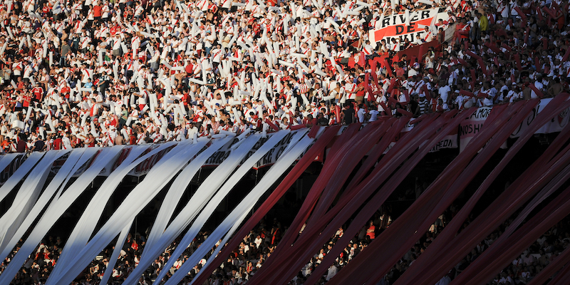 Domenica sera, ventotto giorni dopo la partita di andata, le squadre di calcio argentine del River Plate e del Boca Juniors giocheranno la finale di ritorno di Copa Libertadores, l’equivalente sudamericana della Champions League. Ma la giocheranno a oltre diecimila chilometri dallo stadio del River Plate a Buenos Aires, il Monumental, dove si sarebbe dovuta disputare due settimane fa. La partita più attesa nella storia recente del calcio argentino verrà infatti ospitata non solo in un altro paese, ma addirittura in un altro continente. Si giocherà in Europa, allo stadio Santiago Bernabeu di Madrid, dopo che la CONMEBOL – la confederazione calcistica sudamericana – ha voluto trasferirla lontano dal Sud America per i disordini che tre settimane fa ne avevano causato il rinvio.