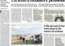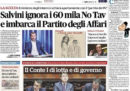 Ci sono notizie diverse in apertura sui giornali di oggi: le indagini sull’incidente nella discoteca di Corinaldo, per il quale è stato fermato un ragazzo sospettato di aver usato uno spray urticante che avrebbe provocato la calca, la trattativa fra governo e Unione Europea sulla manovra economica, e l’incontro fra il ministro dell’Interno Salvini, favorevole alla realizzazione della TAV, e alcune associazioni di imprenditori. I quotidiani sportivi, oltre ai risultati di campionato di ieri, hanno tutti e tre in apertura un’intervista a Cristiano Ronaldo.