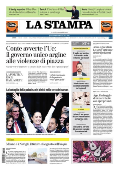 Le prime pagine di lunedì 10 dicembre 2018