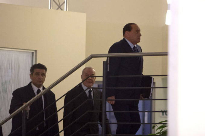 Silvio Berlusconi entra nella sede romana del Partito Democratico dove incontrerà Matteo Renzi per accordarsi su quello che sarebbe divenuto noto come “Patto del Nazareno”, il 18 gennaio 2014 (ANSA/MASSIMO PERCOSSI)