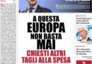 Per la maggior parte dei giornali di oggi la notizia in apertura è ancora la trattativa fra il governo italiano e l’Unione Europea sulle modifiche da apportare alla manovra economica per evitare la procedura di infrazione. Il Corriere della Sera titola sull’uccisione dell’attentatore di Strasburgo ieri sera durante un’operazione di polizia, il Manifesto e Avvenire aprono sulla sentenza del tribunale di Milano che ha condannato il comune di Lodi a modificare il regolamento per l’accesso ai servizi di mensa scolastica, ritenuto discriminatorio, il Giornale è preoccupato per l’approvazione del decreto fiscale e delle nuove norme anti corruzione, e i giornali sportivi si occupano dell’eliminazione del Milan dall’Europa League dopo la sconfitta con l’Olympiacos.