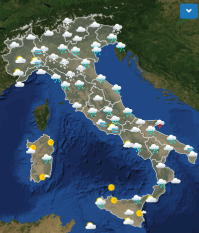 Secondo le previsioni del Servizio meteorologico dell’Aeronautica Militare la settimana inizierà con maltempo diffuso in tutto il paese. Al Nord il cielo sarà in prevalenza coperto con piogge nel basso Veneto e nel triestino e nevicate in Emilia e nella bassa lombarda. Dal Centro al Sud sono previste piogge diffuse. In Puglia ci dovrebbero essere dei temporali. Nelle isole il cielo sereno si alternerà a piogge di breve durata. La giornata di lunedì dovrebbe proseguire immutata fino a sera, quando i rovesci smetteranno e ci saranno schiarite un po’ ovunque, sopratutto al Nord.