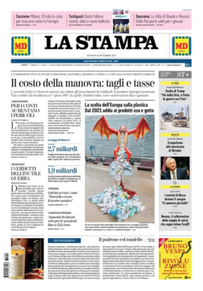 Le prime pagine di giovedì 20 dicembre 2018