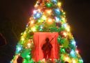 Mancano cinque giorni a Natale e anche se in giro è pieno di procrastinatori in cerca del regalo dell’ultimo momento (ma noi al Post pensiamo anche a voi) o che devono ancora togliere le palline impolverate dagli scatoloni, il mondo è ormai pronto per le feste: le strade sono piene di lucine e luminarie, le piazze di alberi addobbati, le vetrine di renne di peluche, cappelli di Babbo Natale, tanto rosso e tanto oro. In qualche posto ci sono già state sfilate, fuochi d’artificio e spettacoli, il Grand Palais di Parigi è stato trasformato in una gigante pista di pattinaggio e Mosca è stata ricoperta di 1.500 chilometri di festoni e 30 milioni di lucine LED. Chi già sta torcendo il naso per l’eccessivo consumismo può ritrovare lo spirito natalizio nella tenda di una famiglia di migranti dell’Honduras, nel carcere di San Vittore a Milano e in un abbraccio che ha commosso anche Babbo Natale.
