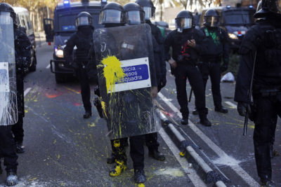 Gli indipendentisti protestavano contro il governo spagnolo, che si trovava a Barcellona: sono state arrestate dodici persone