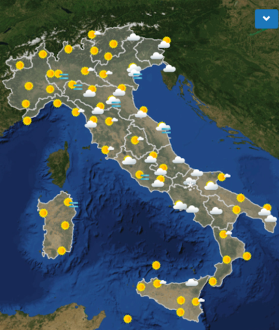Secondo le previsioni del Servizio Metereologico dell’Aeronautica Militare il bel tempo in Italia continuerà anche nella seconda settimana dell’anno: per domani, lunedì 7 gennaio, è previsto infatti in prevalenza cielo sereno, o al massimo qualche addensamento nuvoloso, con la solita nebbia mattutina in Val Padana. L’unica zona del paese dove pioverà continua ad essere la costa meridionale dell’Adriatico, dal basso Abruzzo alla Puglia: lì sono previste brevi piogge, e in Molise nevicate nel pomeriggio. Nonostante il bel tempo diffuso, le temperature subiranno un generale calo.