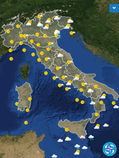 Sole pieno anche al Centro per tutta la giornata: ci potrà essere qualche annuvolamento in Toscana, Umbria e Lazio, ma di scarsa entità.