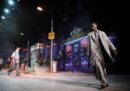 La sfilata è stata presentata come un omaggio a Michael Jackson, ma a parte qualche particolare – dai cappelli ai guanti alle paillettes – lo è stato soprattutto alla sua storia personale, non così diversa da quella dello stesso Abloh. Era ambientata in una strada di New York, di notte, dove i modelli sfilavano in modo apparentemente disordinato scansando le foglie morte, tra i bidoni della spazzatura e gli artisti che disegnavano graffiti sulle saracinesche abbassate dei negozi. Poco prima della fine le luci si sono spente per lasciare entrare cinque modelli con borse e sneaker che si illuminavano nel buio.