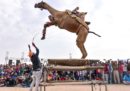 Il 17 gennaio si festeggia la festa cattolica di Sant’Antonio Abate, il protettore degli animali, perciò tra le più belle foto di bestie della settimana ce ne sono alcuni in attesa di essere benedetti. Altri animali si sono fatti fotografare dopo aver trovato una pozzanghera particolarmente profonda (un cane), mentre aspettavano di farsi misurare la temperatura con un termometro rettale (un altro cane) o mentre si esibivano in una performance atletica (un dromedario). La fotografia più notevole tra tutte però è quella di una femmina di squalo bianco lunga circa 6 metri e pesante – si stima – 2,5 tonnellate. È stata fotografata nelle acque di Oahu, alle Hawaii, vicino alla carcassa di un capodoglio.