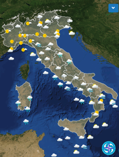 Domani sarà una di quelle giornate in cui toccherà usare una formula molto abusata dai meteorologi della TV: “l’Italia è divisa in due”. Il lunedì sarà prevalentemente soleggiato su tutte le regioni del Nord, mentre per Centro e Sud si prevedono nuvole, piogge e freddo.