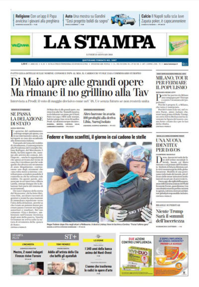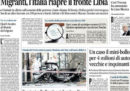 I principali quotidiani di oggi aprono sulle operazioni di salvataggio nel Mediterraneo delle imbarcazioni in difficoltà che trasportano migranti, con i naufragi dei giorni scorsi e il nuovo pericolo per un centinaio di persone salvate poi dalla guardia costiera libica dopo le pressioni del governo italiano. La Stampa e il Secolo XIX titolano invece sull’intenzione del leader del Movimento 5 Stelle Di Maio di procedere con le grandi opere, con l’esclusione però della TAV, il Giornale intervista Tajani sui programmi di Forza Italia, e Libero continua la sua campagna contro il reddito di cittadinanza.