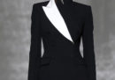 Per finire, si è parlato molto della collezione di Clare Waight Keller per Givenchy, fatta di smoking dai tagli rigorosi, architettonici e austeri ma dallo spirito eccentrico per la presenza di leggings di latex, definiti subito “kinky” dalla stampa. Oltre al latex, Vogue ha segnalato la novità di un enorme fiocco con zainetto, che potrebbe diventare la nuova borsa di successo della haute couture.