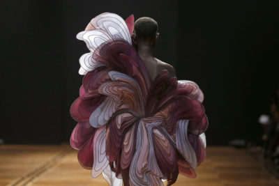 Iris van Herpen, «probabilmente la stilista più inventiva d’oggi», scrive sempre Vanessa Friedman, ha creato una collezione stampata in 3D, tagliata con il laser e disegnata con un equilibrio tra creatività e algoritmi. John Galliano, direttore creativo di Maison Margiela, «ha trattato i modelli e le modelle come qualcosa di interscambiabile, mettendoli nel mezzo di un caos apparecchiato in una stanza ricoperta di graffiti», ha scritto Friedman, tra stampe generate da un computer, fili metallici, piume, tweed, tutto decostruito, tagliato e riassemblato.