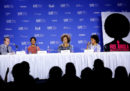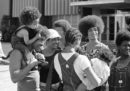 Angela Davis durante un’intervista con le giornaliste dell’Associated Press Edith Lederer e Jeannine Yoemans, nella prigione di della contea di Santa Clara a Palo Alto, in California, il 27 dicembre 1971 (AP Photo/Sal Veder)
