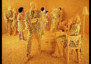 Fino al 24 marzo da Camera a Torino si potrà visitare la mostra Visioni Ibride, dedicata a Sandy Skoglund, fotografa, artista, scultrice e più in generale “creatrice di immagini”, come viene spesso descritta. Skoglund è conosciuta per la staged photography, che consiste nel fotografare situazioni studiate e allestite dall’artista: Skoglund crea immagini che sembrano realizzate con Photoshop, ma non lo sono, e sono invece il frutto di un lungo lavoro scenografico di allestimento. Skoglund pensa e realizza set complessi, creando da sola le sculture, spesso in terracotta e resina dipinta, che le servono.