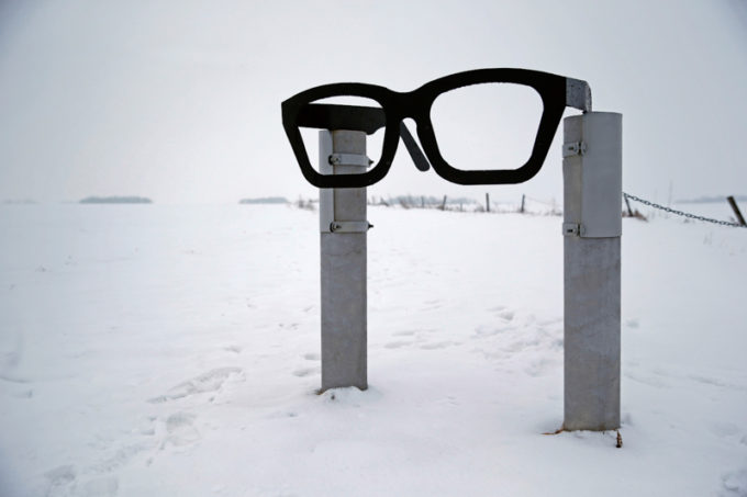 Un paio di grossi occhiali, simili a quelli di Buddy Holly, sul luogo dell’incidente (AP Photo/Patrick Semansky)