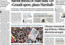 Le discussioni interne alla maggioranza sulla TAV riempiono la maggior parte dei titoli di apertura dei quotidiani di oggi, alternati occasionalmente alle foto del maltempo nel Nord Italia. Repubblica ha un’intervista a Luca Traini, l’uomo che un anno fa sparò e ferì diverse persone africane a Macerata in un attentato razzista. I giornali sportivi, invece, si occupano del deludente pareggio casalingo della Juventus contro il Parma.
