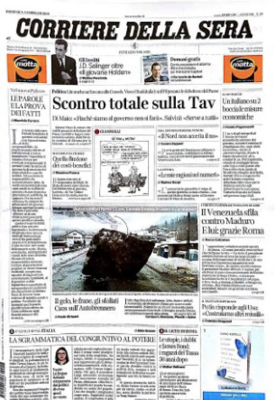 Le discussioni interne alla maggioranza sulla TAV riempiono la maggior parte dei titoli di apertura dei quotidiani di oggi, alternati occasionalmente alle foto del maltempo nel Nord Italia. Repubblica ha un’intervista a Luca Traini, l’uomo che un anno fa sparò e ferì diverse persone africane a Macerata in un attentato razzista. I giornali sportivi, invece, si occupano del deludente pareggio casalingo della Juventus contro il Parma.