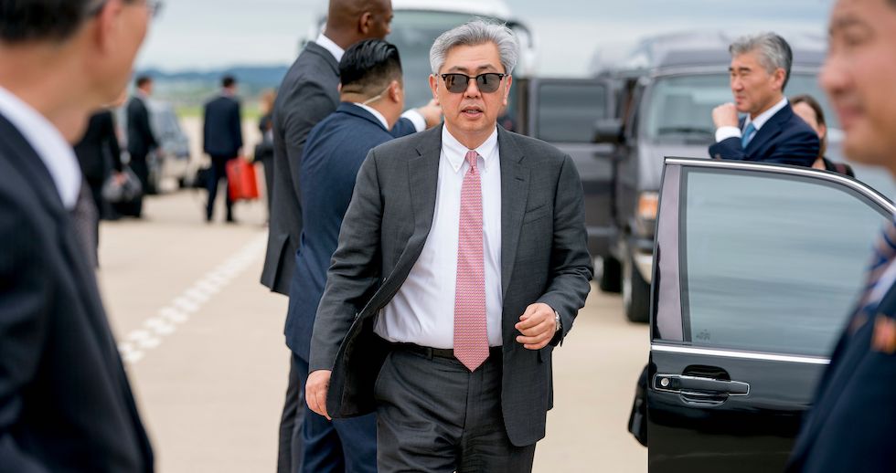 Andrew Kim, capo del Korea Mission Center della CIA, all’aeroporto internazionale di Pyongyang il 6 luglio 2018 (ANDREW HARNIK/AFP/Getty Images)