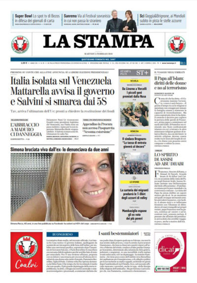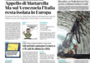 Ci sono molte notizie diverse in apertura sui giornali di oggi: l’intervento del presidente della Repubblica Mattarella che ha sollecitato il governo a prendere posizione sul Venezuela dopo il riconoscimento di Guaidó come presidente da parte di molti paesi europei, le preoccupazioni dell’Unione Europea per le indecisioni dell’Italia sulla TAV, la presentazione della card e del sito per il reddito di cittadinanza da parte di Di Maio, il viaggio del Papa negli Emirati Arabi Uniti, ancora la posizione del Movimento 5 Stelle sulla richiesta di autorizzazione a procedere per Salvini, e l’avvio del festival di Sanremo.