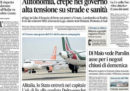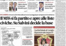 I giornali di oggi dedicano l’apertura a notizie diverse: le proposte del leader del Movimento 5 Stelle Di Maio per modificare le regole del partito sulle proprie candidature alle prossime elezioni dopo l’insuccesso alle elezioni regionali in Abruzzo, il provvedimento che dovrebbe dare una maggiore autonomia alle regioni in discussione nel Consiglio dei ministri di oggi, le discussioni sulla TAV. Repubblica apre invece con un’intervista al presidente del Consiglio Conte, il Corriere della Sera parla con il ministro degli Esteri francese dei rapporti con l’Italia, il Manifesto segue le proteste degli allevatori sardi, Libero critica il Parlamento per il poco lavoro svolto, Avvenire è preoccupato per la mancanza di medici nella sanità pubblica, e i giornali sportivi titolano sulla decisione dell’Inter di togliere la fascia di capitano a Icardi.