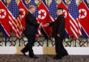 Il presidente statunitense Donald Trump e il dittatore nordcoreano Kim Jong-un si sono incontrati oggi nel Metropol Hotel di Hanoi, la capitale del Vietnam: si sono messi uno di fronte all’altro, hanno fatto qualche passo per raggiungere il centro della stanza, si sono stretti la mano e si sono scambiati qualche parola e qualche sorriso. Nelle prossime ore, dopo un breve colloquio senza i propri consiglieri, i due parteciperanno a una cena alla presenza delle rispettive delegazioni. Gli incontri continueranno anche giovedì, giorno in cui probabilmente Trump e Kim firmeranno un qualche tipo di accordo o intesa e terranno una conferenza stampa congiunta.