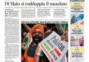 I cambiamenti alle regole del Movimento 5 Stelle annunciati ieri dal capo politico Luigi Di Maio sono in apertura sulla maggior parte dei giornali di oggi: i titoli si soffermano sulla possibilità di fare alleanze con liste civiche nelle elezioni locali, sull’abolizione del limite dei due mandati per i consiglieri comunali, e sulla sua conferma come leader per i prossimi 4 anni. Il Corriere della Sera e il Giornale si occupano del sostegno a Di Maio di Salvini, che sarebbe pronto a rinviare l’approvazione della legge sulla legittima difesa, il Messaggero e Repubblica titolano sull’ipotesi di aumento dell’IVA avanzata dal ministro dell’Economia Tria, il Fatto e il Gazzettino aprono sul provvedimento sull’autonomia regionale, e Avvenire segue le preoccupazioni dell’Unione Europea per la crescita del debito dell’Italia. I giornali sportivi commentano il pareggio 0-0 fra Lazio e Milan nell’andata della prima semifinale di Coppa Italia.