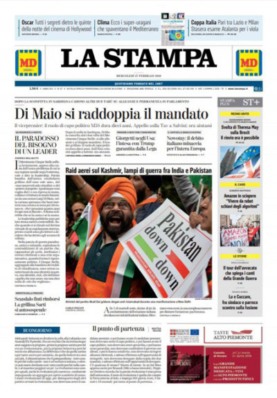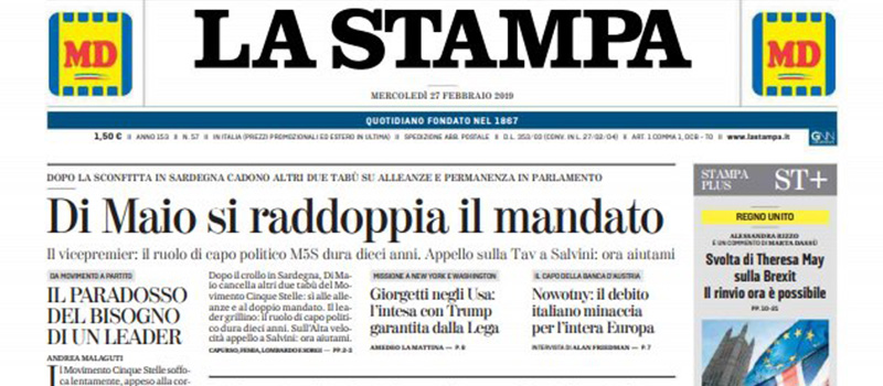 Le prime pagine di mercoledì 27 febbraio 2019