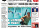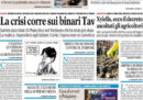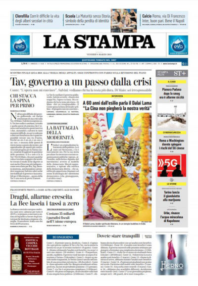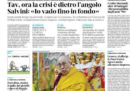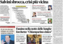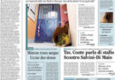 Tutti i giornali di oggi seguono in apertura le divisioni nel governo sulla realizzazione della TAV, che sembrano avvicinare la crisi dell’alleanza di governo: ieri i due vice premier Salvini e Di Maio hanno insistito sulle loro posizioni contrapposte, mentre anche il presidente del Consiglio Conte, pur prendendo tempo per una mediazione, si è espresso contro l’opera. Avvenire si occupa invece della gestione dei migranti, mentre i giornali sportivi commentano il cambio di allenatore della Roma e i risultati delle squadre italiane in Europa League, con il pareggio fra Inter e Eintracht Francoforte e la vittoria del Napoli sul Salisburgo.