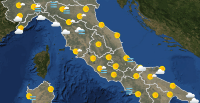 Le uniche eccezioni potrebbero essere due brevi piogge nella seconda metà della giornata, una sul promontorio del Gargano, in Puglia, e un’altra notturna in Valle d’Aosta. Per il resto, sarà soprattutto soleggiato al Sud e parzialmente nuvoloso al Nord.