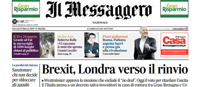 Le prime pagine di giovedì 14 marzo 2019