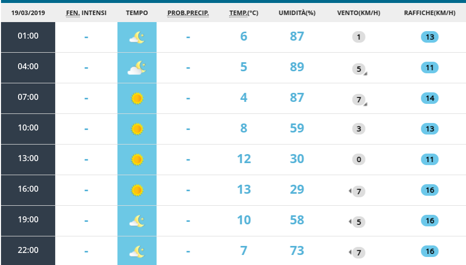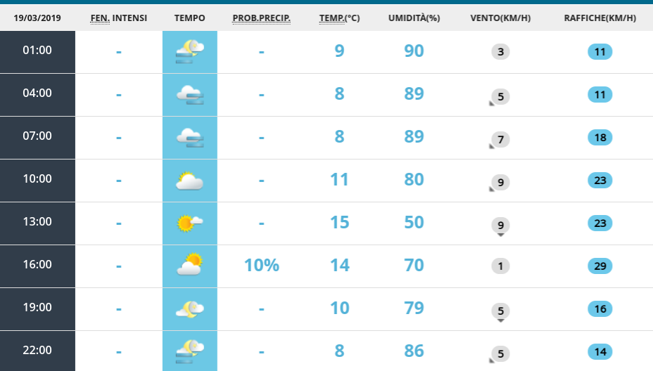 Larghi tratti della giornata del 19 marzo saranno caratterizzati da brutto tempo, al Centro e al Sud, mentre al Nord sarà prevalentemente sereno (il che è stata un po’ una costante di questo inverno); in particolare, pioverà di mattina in Umbria e nelle Marche, mentre di sera in Molise, in Calabria, Basilicata, Campania e Sicilia. Inoltre, se stavate pensando di iniziare il cambio di stagione, forse vi conviene rimandare: le temperature massime torneranno al di sotto dei 15 gradi, e nelle ore più fredde arriveranno a 3-4 gradi al Nord e 7-8 gradi al Centro e al Sud.