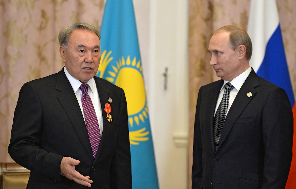 Nursultan Nazarbayev con il presidente russo Vladimir Putin nel 2015 (Agency/Ria Novosti via Getty Images)