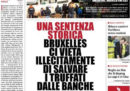 Per tutti i giornali di oggi la notizia in apertura riguarda la nave Mare Jonio della ong italiana Mediterranea, arrivata ieri a Lampedusa dove ha sbarcato i 49 migranti che aveva raccolto al largo delle coste della Libia ed è stata messa sotto sequestro dalla Guardia di Finanza, e la richiesta del ministro dell’Interno Salvini che vengano arrestati i componenti dell’equipaggio. Fanno eccezione il Corriere della Sera, che apre con un articolo del presidente cinese Xi Jinping alla vigilia della sua visita in Italia, e il Fatto, che segue ancora la vicenda della morte di Imane Fadil, mentre il Sole 24 Ore e il Tempo titolano sulla sentenza del tribunale dell’Unione Europea sugli interventi dello Stato per il salvataggio delle banche in difficoltà.