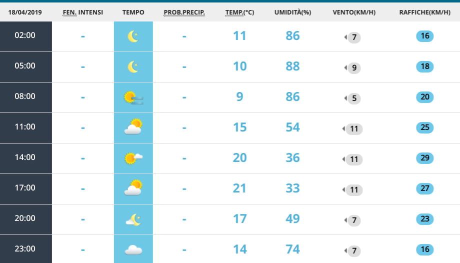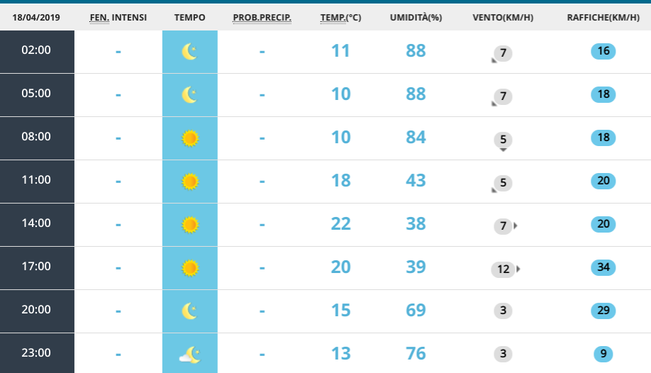 Le previsioni meteo per giovedì 18 aprile
