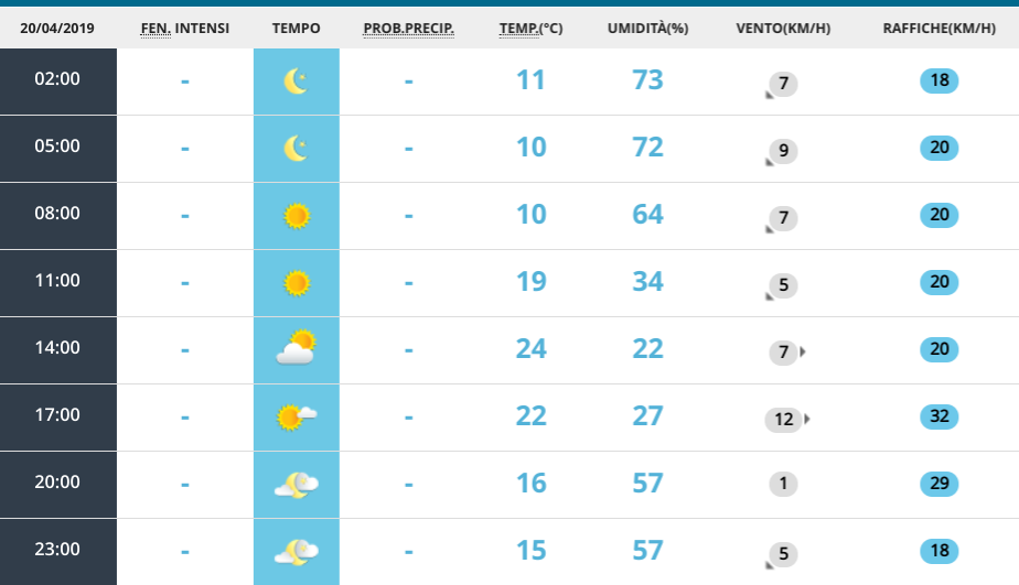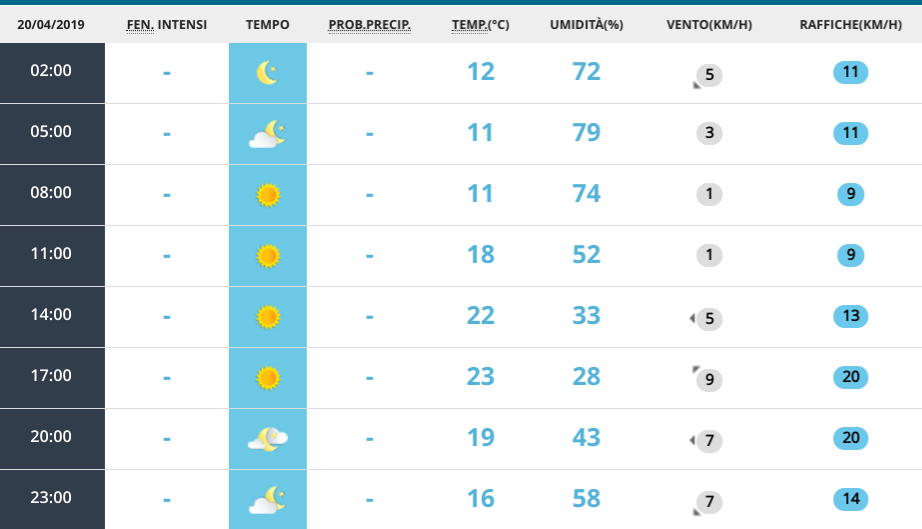 Anche a Milano sarà primavera piena: la massima sarà di 23 gradi, alle 17, e alle undici di sera ci saranno 16 gradi. Inoltre per tutto il giorno non ci sarà neanche una nuvola, solamente verso sera dovrebbe essercene qualcuna, ma innocua.