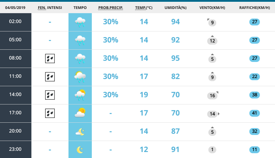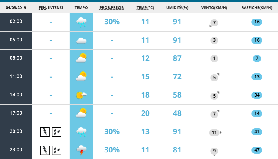 Ci siamo lamentati di aprile-con-l’ombrello, un mese in cui in effetti raramente ha fatto bel tempo uniformemente in tutta Italia, e poi il primo weekend di maggio si presenta così: pioggia praticamente ovunque, con qualche tregua in alcuni momenti della giornata.