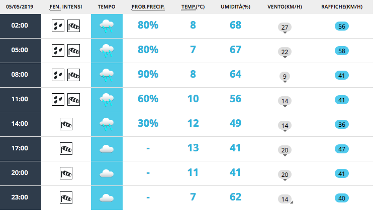 Domani, domenica 5 maggio, non ci sarà il tempo a cui pensiamo quando pensiamo alle domeniche di maggio. Al nord sono infatti previste nuvole quasi ovunque e piogge, in certi casi anche “a carattere temporalesco”. Il cielo sarà coperto anche al centro e sono attese piogge sul settore tirrenico. Al sud andrà un po’ meglio ma anche lì potrebbe piovere in molte regioni, soprattutto nel pomeriggio.