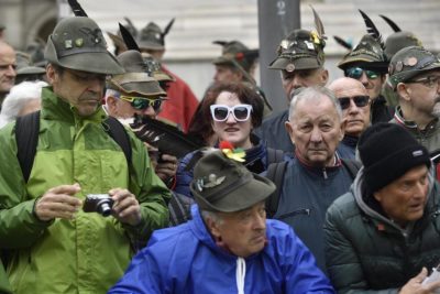 Circa ottantamila alpini stanno sfilando per il centro della città, passando per piazza del Duomo