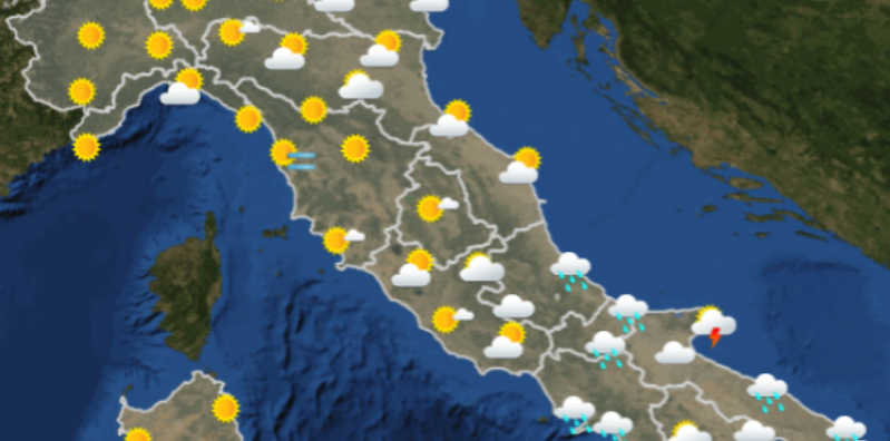 Le previsioni meteo per giovedì sono buone per chi abita al Centro e al Nord, meno buone per chi abita al Sud. Di mattina è prevista pioggia in Sicilia, in Basilicata e nel salentino, mentre al Centro sarà solo nuvoloso e dalla Toscana in su ci sarà il sole. Di pomeriggio peggiorerà in Calabria, in Campania e in Molise, e inizierà a piovere anche al confine tra Lombardia e Trentino-Alto Adige, mentre di sera e di notte dovrebbero esserci schiarite al Sud (ma non al Nord-Est).