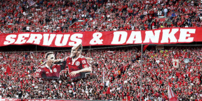 Il Bayern Monaco ha battuto 5-1 l’Eintracht Francoforte nell’ultima giornata della Bundesliga tedesca e ha vinto il titolo nazionale per il settimo anno consecutivo. Con la vittoria di oggi il Bayern ha mantenuto infatti i due punti di vantaggio in classifica sul Borussia Dortmund, la cui vittoria per 2-0 a Monchengladbach è stata quindi ininfluente. Nella giornata del suo ventinovesimo Meisterschale (il trofeo del campionato) il Bayern ha anche salutato Franck Ribery, Arjen Robben e Rafinha, tre suoi storici giocatori che a fine stagione lasceranno il club.