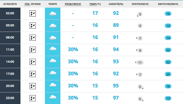 Il tempo sarà nuvoloso al mattino e piovoso a partire dal primo pomeriggio. Come domenica, difficilmente le temperature supereranno i 20 gradi.