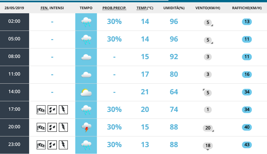 Le previsioni meteo per martedì dicono che il tempo sarà bruttino, in linea con un maggio che è stato piovoso e bizzarro quanto il mese precedente: praticamente si può dire che la primavera, fin qui, l’abbiamo a malapena intravista. Di mattina pioverà in Friuli Venezia Giulia, in provincia di Venezia, in Emilia-Romagna, in Trentino-Alto Adige, in Umbria, intorno a Urbino e a Rieti, nelle province di Napoli e Trapani. Di pomeriggio e di sera continuerà a piovere e in più ci potrebbero essere temporali su tutto il Centro-Nord, mentre di notte dovrebbe piovere solamente in Liguria, in Emilia-Romagna e nel Nord-Est (dove praticamente sarà brutto per tutto il giorno).