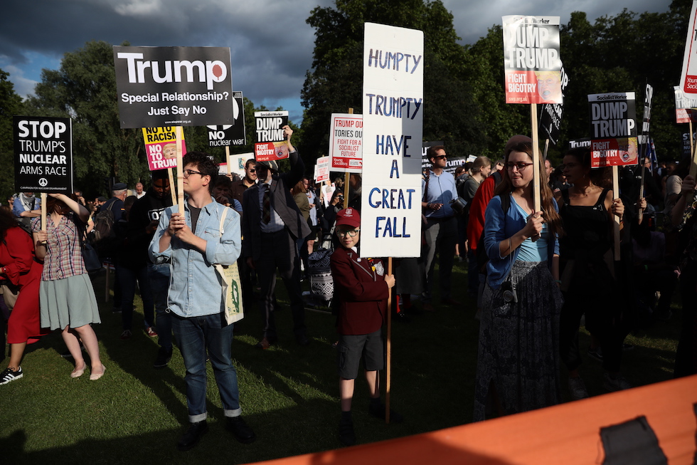 Fuori da Buckhingam Palace invece più di 100 manifestanti hanno protestato contro la visita di Trump: si prevede che oggi la manifestazione, organizzata a Trafalgar Square, sarà molto più grande, con più di 250mila partecipanti e il ritorno del gonfiabile di Trump-neonato che si era già visto nel 2018. Tra gli altri anche il capo del Partito Laburista Jeremy Corbyn, che ieri ha difeso Khan dagli attacchi di Trump, parteciperà alla manifestazione e terrà un discorso.