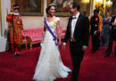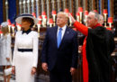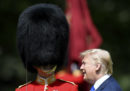 Lunedì il presidente degli Stati Uniti Donald Trump è arrivato nel Regno Unito per la una visita di stato che anticipa il 75esimo anniversario del D-Day, cioè dello sbarco in Normandia degli eserciti alleati di Stati Uniti, Regno Unito e Canada durante la Seconda guerra mondiale. La prima cosa che Trump ha fatto, ancora prima di scendere dall’aereo, è stata dare del perdente al sindaco di Londra Sadiq Khan, che aveva detto di essere contrario alla visita di stato. Dopodiché ha avuto una giornata densa di impegni formali con la famiglia reale britannica: tra le altre cose ha ispezionato il reggimento di guardie a piedi Coldstream (quelle con gli alti colbacchi di pelle d’orso), ha preso un tè con il principe Carlo e Camilla Parker-Bowles e ha partecipato a un banchetto a Buckingham Palace con 170 ospiti, organizzato per lui dalla regina Elisabetta II.