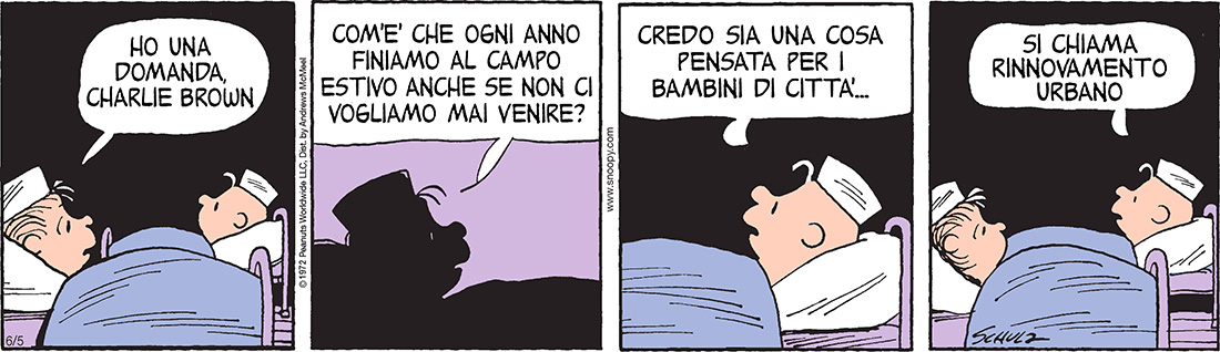 I PEANUTS sono la striscia a fumetti più famosa del mondo, pubblicata quotidianamente tra il 1950 e il 2000, quando morì a 77 anni il suo autore Charles Schulz. Ancora oggi le repliche delle strisce sono distribuite e pubblicate ogni giorno sui quotidiani di decine di paesi del mondo: in Italia, dal Post. La popolarità e l’influenza della striscia – e dei suoi personaggi più famosi, soprattutto Charlie Brown, Snoopy, Linus – si è estesa nel tempo a tutti i media e alla vita quotidiana di mezzo mondo, attraverso i loro caratteri, le loro battute, il radicamento delle loro consuetudini, e una quantità straordinaria di efficacissimi aforismi e citazioni. Le frustrazioni, insicurezze, illusioni, ansie, dei personaggi bambini hanno sempre rispecchiato quelle dei lettori adulti aggiungendovi tenerezze infantili che hanno sempre appassionato i lettori bambini: costruendo nel tempo un successo presso generazioni diversissime. Il nome Peanuts venne scelto dal distributore della striscia citando quello di un pubblico di bambini in uno show televisivo dell’epoca, e si è sempre detto che a Schulz non piacesse. Ma come dice Lucy Van Pelt, «più si invecchia, meno si è sicuri rispetto a un sacco di cose».