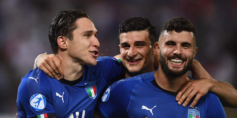 La Nazionale di calcio Under 21 ha battuto 3-1 la Spagna nella giornata inaugurale degli Europei di categoria, che si svolgono in Italia e San Marino. Hanno segnato due gol l’attaccante della Fiorentina Federico Chiesa, autore di una grande partita, e il centrocampista romano Luca Pellegrini, su rigore. La vittoria è arrivata in rimonta, dopo il gran gol nei primi minuti dello spagnolo Dani Ceballos. Dopo un inizio stentato, la Nazionale allenata da Luigi Di Biagio ha giocato una partita di grande tenacia e aggressività, dominando gli avversari nei contrasti e portandosi di frequente in attacco con azioni rapide e ben organizzate. La prossima partita sarà contro la Polonia mercoledì 19 giugno – si giocherà di nuovo a Bologna, come quella contro la Spagna – e l’ultima del girone si giocherà sabato, contro il Belgio, a Reggio Emilia. L’Italia ha ora 3 punti nel girone, a pari merito con la Polonia: per la prima classificata c’è l’accesso diretto alle semifinali.