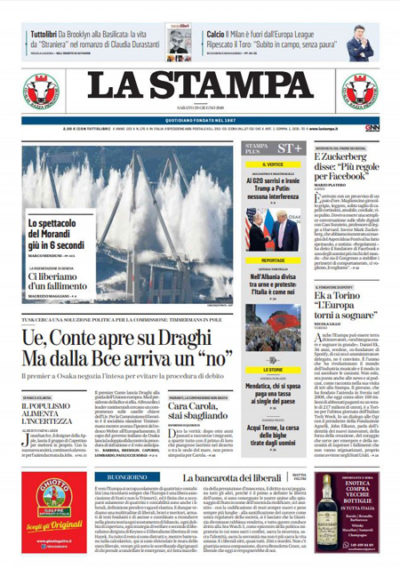Le prime pagine di sabato 29 giugno 2019